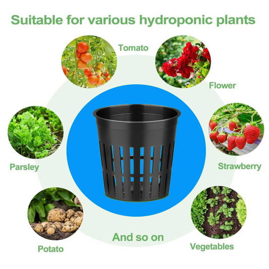 2 Inch Hydroponics Net Pots - Slotted Mesh Net Cups for Plant Growing System - Self Watering Baskets for Indoor and Outdoor Plants, Hydroponics Supplies Kit