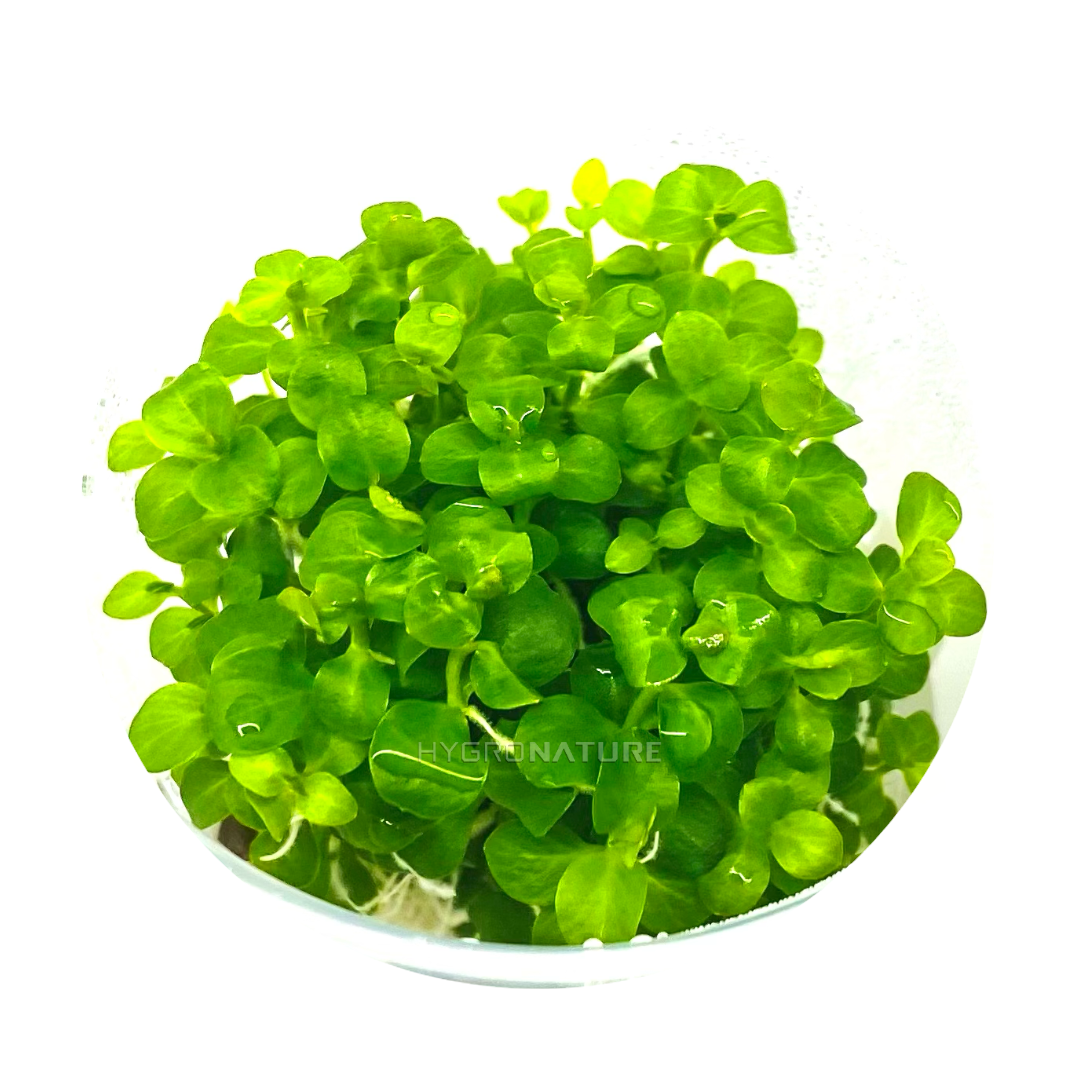 Lysimachia nummularia 'Aurea', also known as Golden Creeping Jenny, is a unique plant that is at home underwater in an aquarium and growing in your garden. L. mummularia is moderately tall and suitable for placement in the middle ground, depending on the size and design of the waterscape. It can be "trained" to grow even shorter and used as a "street plant" in Dutch-style waterscapes, growing low above the substrate almost like a carpet. With golden leaves, it takes the form of a beautiful bush and becomes even bushier with frequent pruning. With high light and CO2, it grows denser and lower and can even crawl along the surface of the substrate like a carpet plant. L. nummularia is very easy to care for and easily adapts to almost any environment, making it particularly suitable for beginners. It is one of the first aquarium plants and can be kept in non-technical settings, including unheated cold water tanks with Goldfish. Moderate to strong lighting, CO2 addition and nitrate fertilization, and a soft, nutrient-rich growing medium encourage faster, denser growth, as with all plants, but are by no means necessary. Lysimachia mummularia depends mainly on nutrients found in the water column and is not selective regarding substrates. In fact, it's perfectly happy to just float. Golden Creeping Jenny should be pruned frequently to encourage attractive, healthy growth, and the resulting cuttings can be transplanted for easy propagation. You can even grow pieces in a mason jar near a windowsill for a nice display! Finally, this beautiful golden variety is both unassuming and versatile, making a great addition to any level of hobbyist's aquarium. It is particularly tolerant to different water conditions and grows only with water and light. It is an ideal plant for those who have never grown aquarium plants before, have goldfish or a unique addition to high-tech specialized tanks. Lysimachia mummularia is a species of amphibian and is commonly used as a ground cover in gardens where it grows very low to the ground and "creeps" along the ground. Therefore it is perfect for terrariums or WakiKusa. Originally from Europe, Lysimachia m was introduced as a garden plant in North America. Although this "award-winning" golden variety is unlikely to be as aggressively invasive as its wild-type cousin, care must be taken to keep this plant out of natural bodies of water because it is so hardy and can survive a North American winter. This applies to all aquarium plants, so grow them responsibly..