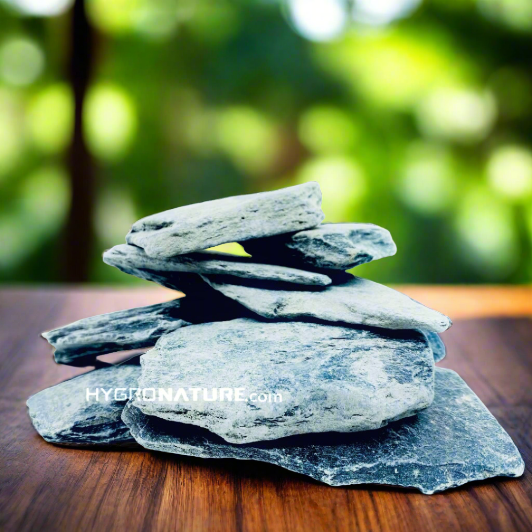 Create a stunning aquascape with our Natural Gray Slate Rocks. These versatile stones are not only perfect for aquariums, but can also be used for other nature setups. With a pH neutral and fish tank-safe composition, you can confidently add these rocks to your underwater world. Embrace the unique size and color variations, as this is a completely natural product.